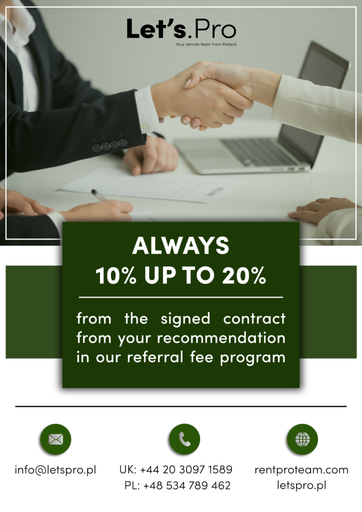 - Earn: Receive a minimum of 10% commission on every successful referral that results in a signed contract. The more contracts you refer, the higher your earnings, with up to 20% commission.